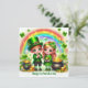 Glad St Patricks höjdags-kort med en söt pojke och flicka, guldklimpar, klöver och en regnbåge