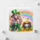 Glad St Patrick's semesterkort med en dam som bär en Leprechaun-hatt, guldgryte, klöver, fjärilar och en regnbåge