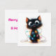 Denna glada svarta kattunge, intrasslad i lysande julgransbelysning, är redo att sprida lite julstämning. Perfekt för att dela varma önskningar med nära och kära.
