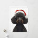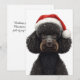 Glad svart pudel hund i tomteluva illustration julkort