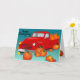 Denna design belyser tacksägelsefirandet med en röd gammal lastbil full av pumpor och höstlöv.