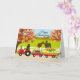 Glad tacksägelsedag Labradors och traktor-kort för Labrador-fans! Söt Labrador-familj marscherar med höstskördade grönsaker i den vackra höstutsikten. Två hästar är deras publik. Skapad av Naomi Ochiai.