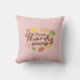 Vacker och modern tacksägelsedags kudde med subtila höstfärger, blad mot en mjuk rosa bakgrund.