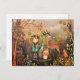 "Glad tacksägelsedagen" med skogsdjur och vänner i höstmist med en färgrik scen med massor av djur och gröna, orange och bruna städer, höstfärger. Du kan anpassa hälsningen och texten på baksidan av vykortet. Det har olika karaktärer: en liten flicka, rävar, hjortar, fåglar, korpar, ekorrar och möss. Skicka det till dina släktingar, vänner eller familjemedlemmar.