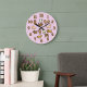 Vacker lavendelväggklocka för hundälskare. Denna roliga hemakcent är dekorerad med olika fantasifulla tecknade illustrationer av hundar. Designen inkluderar stora, feta siffror för varje timme. Fantastisk husvärmegåva till en hundälskande familj eller hundägare.
