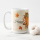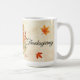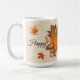 Personalisera denna unika "En av en sort" Glad Thanksgiving Pumpa Mugg! Den har en vacker orange pumpa omgiven av höstlöv i nyanser av ljust orange, mörkt orange och grönt med orange bär och bruna svampar på en tan bakgrund!