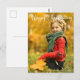 Elegant Glad Thanksgiving-fotobrevkort med vacker kursiv typografi i vitt över ditt höstfoto. Detta moderna höstfamiljefotokort med vikning har vackert skript och ditt namn i vitt över det helblodiga säsongsbetonade semesternfoto.