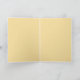 Anpassad Thanksgiving-kort med solfjäderpumpa på gul bakgrund, med "Glad Thanksgiving" i skrivstil och familjenamn i sans serif-typografi. Matchande gul interiör med solfjäder. Välkomst och namn kan redigeras. Finns också för direkt nedladdning för enkel delning med vänner och familj.