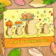 Den här söta, handritade Thanksgiving-kortet visar fyra tecknade igelkottar som bär allt du behöver för en bra Thanksgiving-middag: en pumpa, paj med vaniljkräm, en utsökt stekt kalkon, färgglada höstlövar och naturligtvis massor av tacksamhet och glädje.