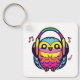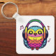 Glad uggla med hörlurar som lyssnar på musik. nyckelring