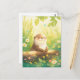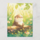 Det här förtrollande vykortet visar en söt, leende utter som tittar fram bakom en strukturerad stock i ett soldränkt fält. Konsten är utförd i en mjuk, lysande akvarellstil som blandar en livfull palett av citrongul, vårgrön och inslag av himmelblå och korall. Ömtåliga tusenskönor och fladdrande gröna blad omger uttern, badade i ett varmt, eteriskt sken med subtila skimrande ljuskulor. Med sin glada atmosfär och mjuka botaniska texturer är detta vykort ett perfekt val för att skicka en solig hälsning, ett uppmuntrande meddelande eller en varm vårhälsning.