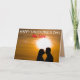 Vacker kort som firar kärlek med par i silhuett under en vacker solnedgång med citat Glad valentinsdag min kärlek på omslaget och Jag älskar dig som innergreeting.