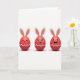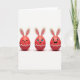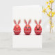 Denna design visar tre röda, äggformade karaktärer som står sida vid sida mot en ljus vit bakgrund, var och en med långa krämfärgade öron med mjuka rosa mittpartier som en vårkanin 🐰. Mjuk belysning skapar en blank glans på deras rundade ytor, och svaga skuggor under dem får dem att kännas tillräckligt nära för att sträcka sig till varandra. Figuren till vänster har en lugn, sluten leende mun, lutad något mot mitten som om den delar en tyst, tillgiven stund. Den mittersta figuren ser framåt med stora ögon, en liten tand synlig i ett fnissande leende, och fina ögonfransar som ger den en flirtig, vänlig charm 🐇. Figuren till höger skrattar med öppen mun och ljusblå ögon, vinklad som om den reagerar på den mittersta figurens skämt. Nära botten av varje röd form löper ett vitt