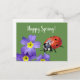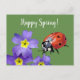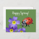Nyckelpiga och blommor. Anpassa din text, vackert vykort för vårfirande . Lätt att lägga till din bakgrundsfärg.