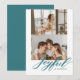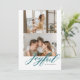 Ett julkort med två bilder har vattenfärg pensel lettering med ordet "Glad".