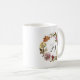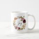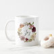 Denna enkla och stilrena julmugg har en vinröd, rosa och vit blomsterkrans i vattenfärg med gröna bladaccent. Denna eleganta krans inramar ordet "Glad" på en vit bakgrund.