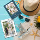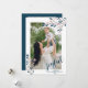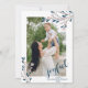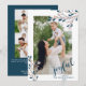 Skicka denna vackra julkort till dina vänner och familj med en vinterblomma ram med ett foto, ett "glad" skrivstil, familjenamn och år, och lägg till fyra bilder med ditt personliga meddelande på baksidan.