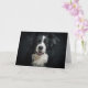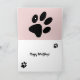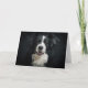 Vacker border collie Glad Woofdag! fällbart kort med tassavtryck på insidan.