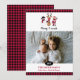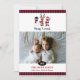 Detta roliga och söta julkort har en snöman, ren och tomte som bär masker. Det finns buffelrandiga rutmönster och vackra röda, vita, svarta och beige färger. Du kan anpassa detta med dina namn, året och foto. Baksidan har ett buffelrandigt rutmönster. Du kan lägga till foton eller text på baksidan om du önskar.