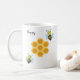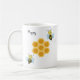 Glada bin och bikupa Mugg. Glad kalligrafi kan anpassas.