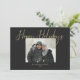 Dessa enkla 7" x 5" julkort med enkel foto för nyår innehåller hälsningen, Gott nytt år, i sage på svart bakgrund med platshållare för ditt favoritfoto, familjenamn och år.