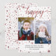 Vårt glada julkort med 2-foto har fantasifull, handskriven typografi och stjärnor och fallande snö i en rik, rustik burgunderfärg. Anpassa enkelt med dina foton och familjenamn. #GladaHelgdagar #JulFotoKort
