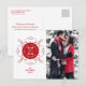 Glada helger, kärlek fred glädje, varmaste önskningar Full cirkel hälsningar typografi på röd och vit vintage utsmyckad klassisk sigill jul foto vykort.