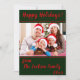 Glada högtider Familjefoto Platt julkort. Glad jul fotokort i grönt med röd text på framsidan av kortet. Anpassa orden efter din stil. Kortet har skriv kalligrafi på framsidan och vanlig serif-typ på baksidan. Skicka en julhälsning till dina nära och kära med ett familjefoto så att familj och vänner kan se hur du och dina barn mår i år. Förbättra meddelandet på insidan för att återspegla din egen stil.