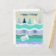 Det här julkortet för lärare utformades i ett alternativt färgschema. Det har element i marinblått, turkos och lila, inklusive sönderrivet papper, granar och snöflingor. Designen inspirerades av scrapbooking. För att lägga till text på baksidan (se till att sidan visas), klicka på "Anpassa" och sedan "Lägg till text". Välj en teckensnittsstil ('f' i en cirkel), teckenstorlek och färg.
