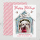 Önska dina vänner och familj glada högtider med detta roliga julkort för husdjur. Innehåller "Glada högtider" i skrivstil, med tassavtryck och en söt hundkoja som ramar in din husdjurs foto. Anpassa med ditt meddelande och namn nedan. Detta roliga och glada julkort kommer att bli en favorit bland alla hund- och husdjursälskare. Fira säsongen med detta glada julkort från Cherry Lane Designs!