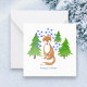 Glada högtider Grattiskort. Original akvarelldesign av Cathy Thompson Art. Whimsical räv i skogen med tallar och snöflingor.