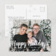 Glada högtider Snö Postkort. Detta unika och fantasifulla glada högtider postkort har en festlig ram med vita snöflingor och vit text för att anpassa över ett anpassningsbart familjefoto. Hitta matchande föremål i julhögtider Snöflinga Kollektion.