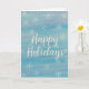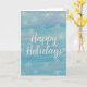 Skicka varma vinterhälsningar med detta eleganta "Happy Holidays"-kort med din egen handmålade akvarellsnöflingedesign. Mjuka blå toner, känsliga texturer och luftiga penseldrag skapar en fridfull vinterkänsla som passar perfekt för alla säsongsfiranden.