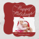 Ditt favoritfoto är accentuerat med gnistrande, blinkande ljus som stavas Glada högtider på en tranbärs-röd bakgrund.