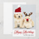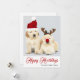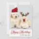 Den här höjdsignade juldesignen visar ett foto av två Golden Retriever-valpar som bär röda julhattar och texten "Happy Howlidays" skriven med populär röd typografi med ett familjenamn tillagt nedan. Baksidan av kortet är tomt så att du kan lägga till ditt meddelande. För att personlig göra kan du lägga till ditt eget foto och redigera texten.