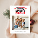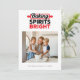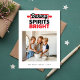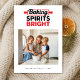 Fira säsongen med ett varmt och lekfullt julkort med texten ”Baking Spirits Bright”, perfekt för familjer som älskar att vara i köket. Med fet röd och svart typografi, ett festligt baktema och utrymme för ett favoritfamiljefoto, sprider denna design glädje och personlighet i dina julhälsningar. Den snöiga röda baksidan lägger till en glad touch, vilket gör det till en rolig souvenir för nära och kära både nära och fjärran.