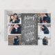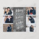Det här moderna och snygga julkortet fungerar även som ett spara-datum-kort för det nyligen förlovade paret. Framsidan visar 6 av dina foton med handritade snöflingor och handgjord typografi som säger "Glada kyssar och varma julhälsningar från den snart blivande herr och fru" på en svart tavla i bakgrunden. Baksidan visar ett fullständigt foto med en genomskinlig vit överdel med din spara-datum-information, adress och anpassat meddelande.