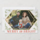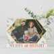 Dubbelhäftande julkort med foto. Har geometrisk design, grönska och texten "Glad och ljus".