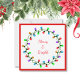Glada och ljusa omgivna av färgglada runda julbelysningar. En enkel men snygg design för dina julkort.