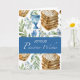 Denna vackra påskdesign har en akvarellillustration av staplade matza, en traditionell vinkopp (kiddush-kopp) och ömtåliga blå blommor inflätade med grenar, allt mot en mjuk och lugn bakgrund. Den eleganta blå stapeln tvärs över designen framhäver budskapet "Glada påskönskningar". Denna genomtänkta och festliga design fångar semesterns anda och gör den till ett perfekt sätt att sända välsignelser och fira glädje, fred och enighet under påsken med nära och kära.