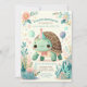 Fira din lilla enes speciella dag med vår glada sköldpaddans födelsedagsinbjudan! Denna hjärtvärmande inbjudan visar en vänlig sköldpadda iförd en festlig födelsedagshatt, redo att välkomna vänner och familj till en dag full av glädje och kul. Mot en bakgrund av lugna pastellfärgade blommor och lekfulla ballonger skapar denna design en atmosfär av mild munterhet och söt firande. Perfekt för djurälskare och beundrare av allt sött, lovar denna sköldpaddans-inspirerade inbjudan en händelse fylld med pizza, tårta, skratt och lekar. Skapa en minnesvärd födelsedagsfest som börjar med denna charmiga inbjudan, som säkert kommer att ge leenden och spän