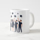 Glada studenter som firar med att kasta mössor jumbo mugg