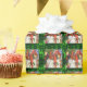 Denna produkt har en design med glada tomtar som slår in en present. Det här är en vintage-design med tomtar som glatt slår in en stor julpresent. För att ytterligare förstärka effekten kombineras den med en modern grön snöfladesbakgrund.
