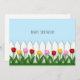 Glada tulpaner framför ett vitt staket är det perfekta sättet att inbjuda vänner och familj till ditt glada tillfälle. Anpassa både framsidan och baksidan av detta kort för att ge alla nödvändiga detaljer till dina gäster.