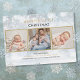 Sprid glädjen av en jul födsel med detta eleganta moderna julen födelse meddelande kort. Personifiera framsidan med dina 3 speciella foton, barnets namn, och födelse statistik, och jul hälsning, med en vacker fallande snöflingor frost bakgrund. Designad av Thisisnotme©