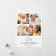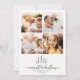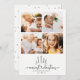 Enkel modern 4-fotokollage julkort med en söt och fantasifull text som läser MERRIEST CHRISTMAS med en handskriven hjärtformad förbindelse under ett sött snöigt trädscen. Utrymme för dina 4 anpassade foton och meddelande. På baksidan finns ett vackert minimalistiskt prickmönster.