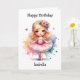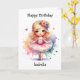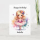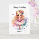 Personlig födelsedagskort för en liten flicka. Söt akvarell liten flicka balettdansös omgiven av rosa och lila blommor. Inuti finns en färgningssida. All text på kortet kan ändras i personaliseringsområdet.