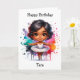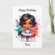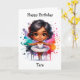 Personlig födelsedagskort för en liten flicka. Söt akvarell liten latinsk flicka med svart hår, brunögd balettflicka i rosa tuta. Inuti finns en färgningssida. All text på kortet kan ändras i personaliseringsområdet.