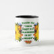 En vacker blommigt mugg, skapat från marigold och glöm-mig-ej blommor, med ord från bibeln "Thou har lagt sig gärna i mitt hjärta", Psalm 68:19