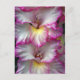 Fina vita gladiola-blommor med vykort för rosa-trim
